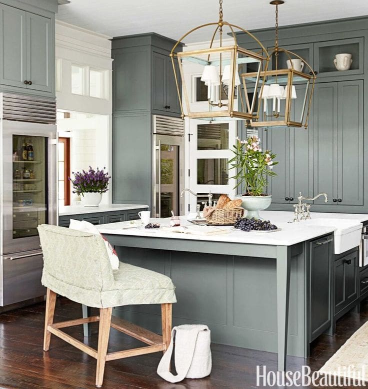 The kitchen island is the focal point of the kitchen. Instead of opting for sage green cabinetry, you can incorporate this timeless color in just your kitchen island.